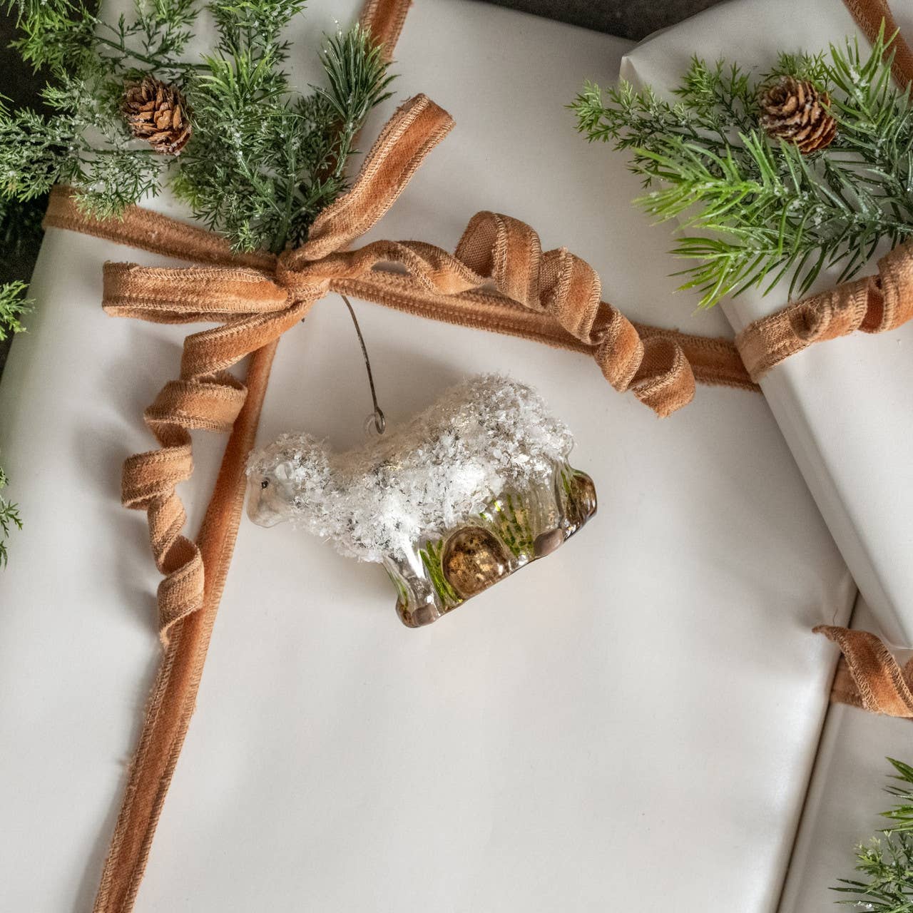 How cute is this vintage style glass sheep ornament? Standing at approx. 3" tall and adding a little whimsy to your tree.